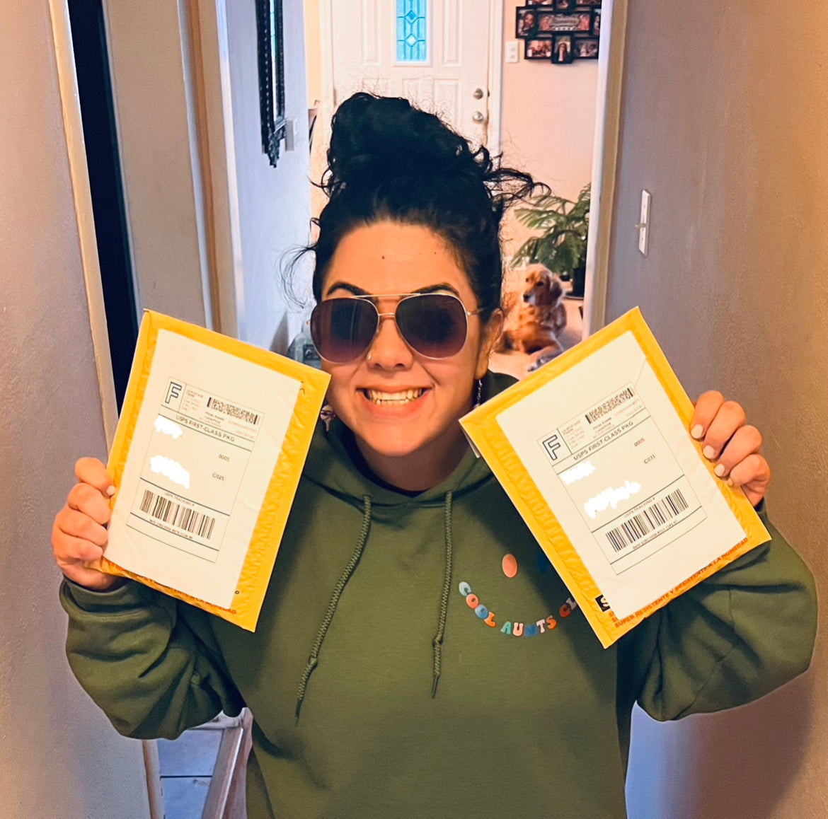 i actually started out as saratonin earrings: just a tiny idea and a few pairs of earrings. my first sale was to two of my friends, and i still remember how excited (and nervous) i was. i even have a photo of me holding those first two orders. that moment meant everything to me, and it’s what made me believe i could really do this.
