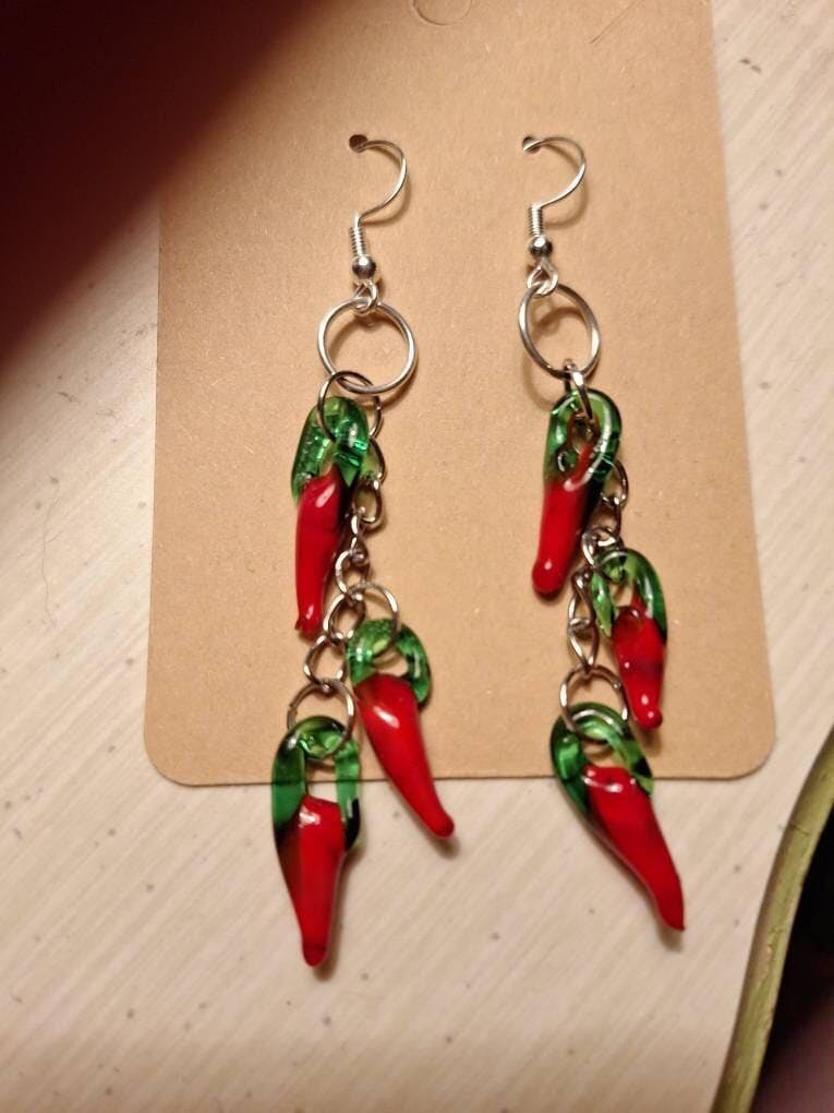 Gorgeous chilli earrings . Sara was so sweet hen I ordered them . They arrived super quick , even from LA to the UK