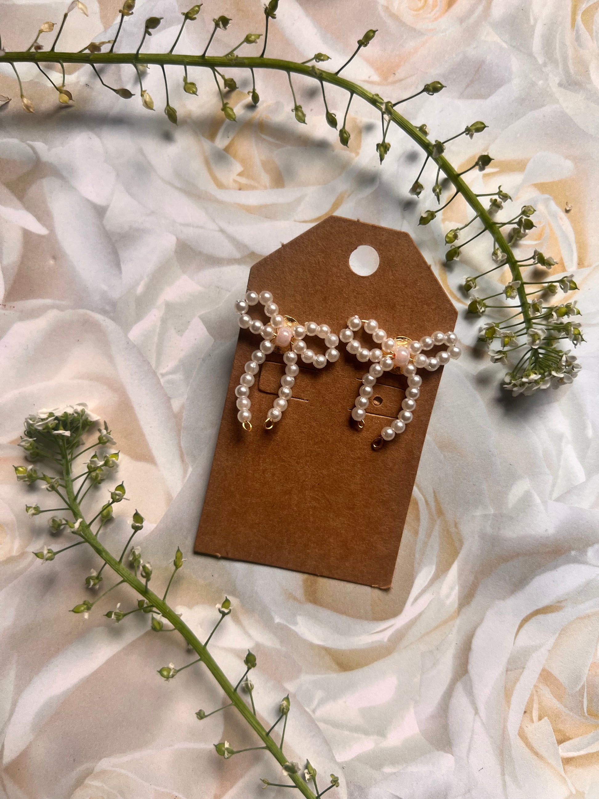 these whimsical bow earrings are lovingly hand-formed with delicate, dewdrop-like pearls on a soft, golden-hued wire. they're the perfect dreamy accessory for adding a romantic finish to any look.